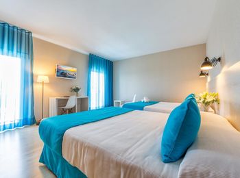 Deze lichte kamer is voorzien van airco en een eigen balkon met uitzicht op de zee, de bergen of het zwembad. De kamer heeft ook een satelliet-TV en een badkamer met een haardroger.
