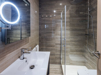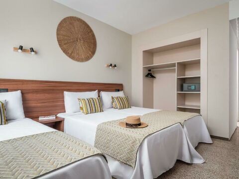 Deze ruime kamer heeft een tweepersoonsbed en een balkon, en indien met drie een extra eenpersoonsbed . Het beschikt over een eigen badkamer met een douche, een haardroger en een make-upspiegel. Er is een flatscreen-tv en airconditioning of verwarming, afhankelijk van het seizoen. Minibars, kluisjes en WiFi zijn beschikbaar tegen een toeslag.