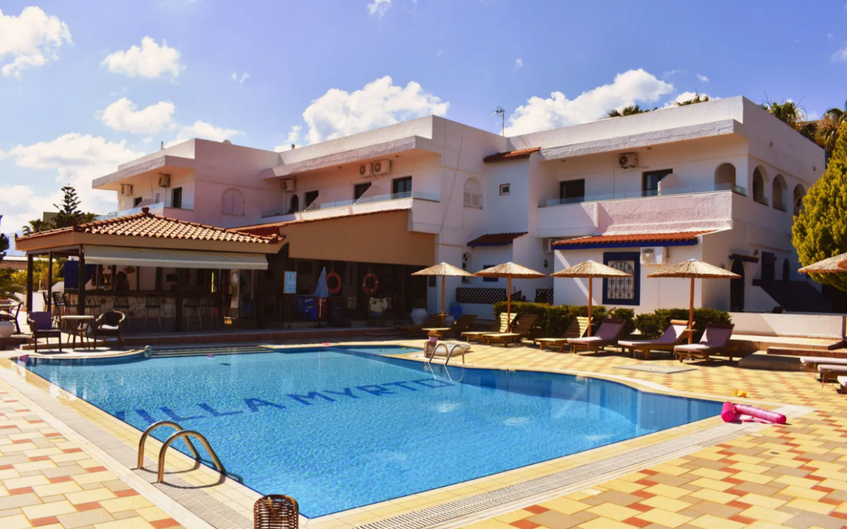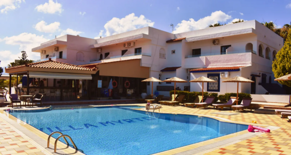 Villa Myrto is een heerlijk appartementencomplex met een ideale ligging, vlak bij het strand en het bruisende centrum van Chersonissos. Je staat binnen een mum van tijd in het centrum met tal van winkeltjes, bars en restaurants. Villa Myrto beschikt bovendien over een heerlijk zwembad met een zonneterras waar je heerlijk kunt genieten van de Griekse zon!