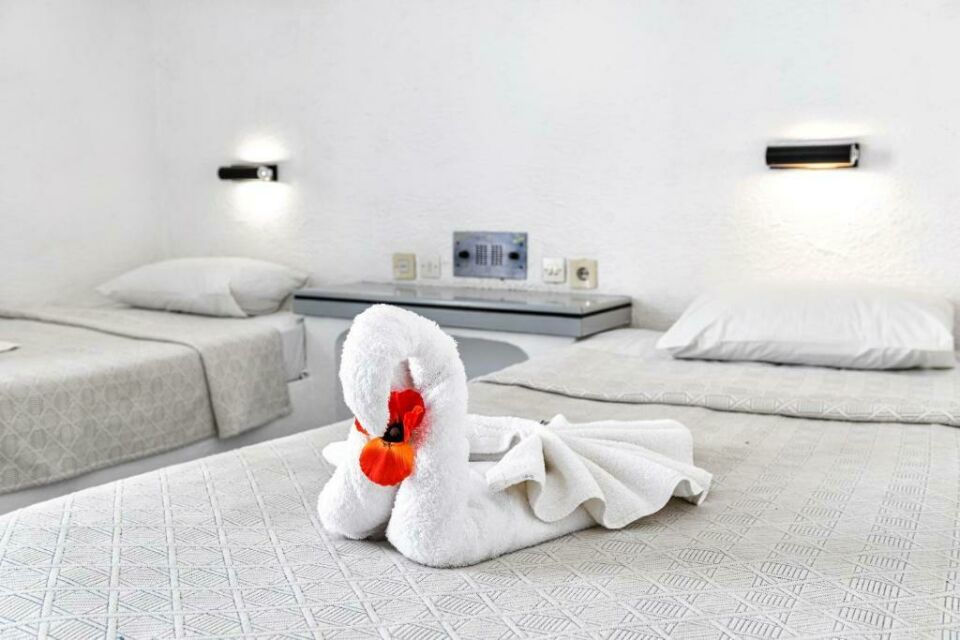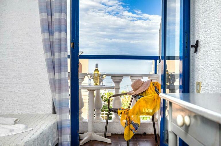 De nette en simpele standaardkamers (1-3 personen) zijn ingericht in traditionele Griekse stijl. Allen beschikken over een balkon of terras, een badkamer met douche of bad en toilet, airconditioning (tegen betaling), een satelliet televisie, een telefoon en een koelkast (tegen betaling). Föhns en kluisjes zijn op verzoek en tegen betaling verkrijgbaar bij de receptie.