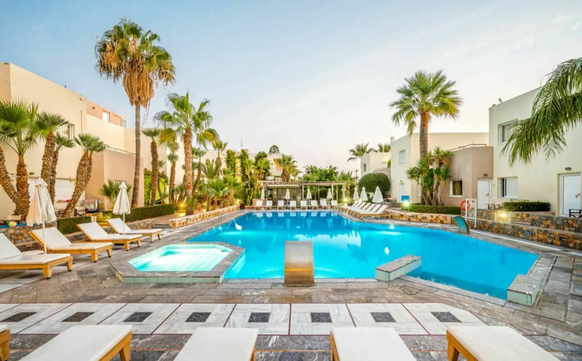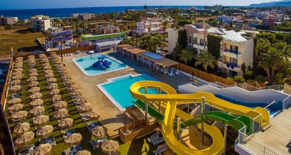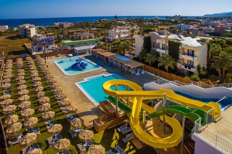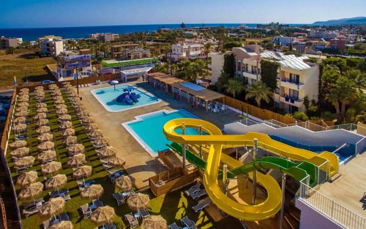 Meropi Aparthotel in Malia is een betaalbaar en relaxed aparthotel voor jongeren die zon, waterpret en gezelligheid willen combineren. Je zit op korte loopafstand van het strand en dicht bij het centrum, met bars, winkels en restaurants om de hoek. Het hotel heeft meerdere zwembaden, een waterpark met glijbanen en comfortabele studio’s en appartementen met balkon en kitchenette. Met de mogelijkheid tot all-inclusive is het een ideale plek om zorgeloos te genieten van je vakantie op Kreta.
