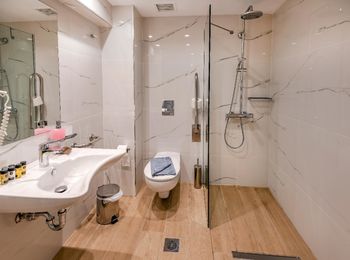 • Badkamer douche, toilet, föhn, badjassen en badslippers