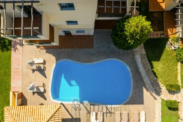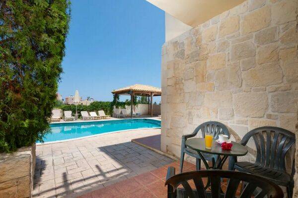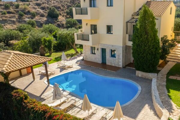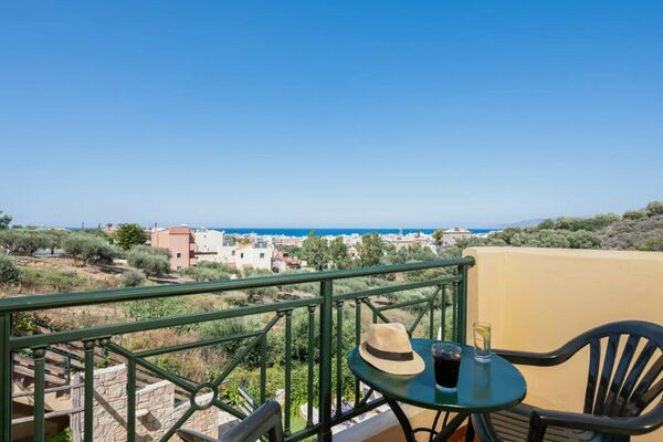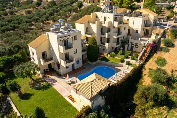Het complex ligt in een heuvelachtige omgeving met prachtige olijfbomen en panoramische uitzichten over Chersonissos en de zee.