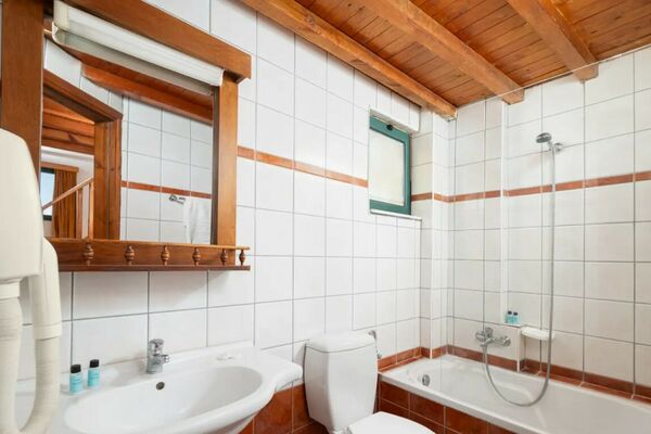 • Badkamer met bad of douche, toilet en föhn